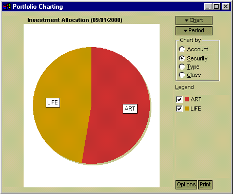 Pie chart of Carey Young's investment in ART and LIFE